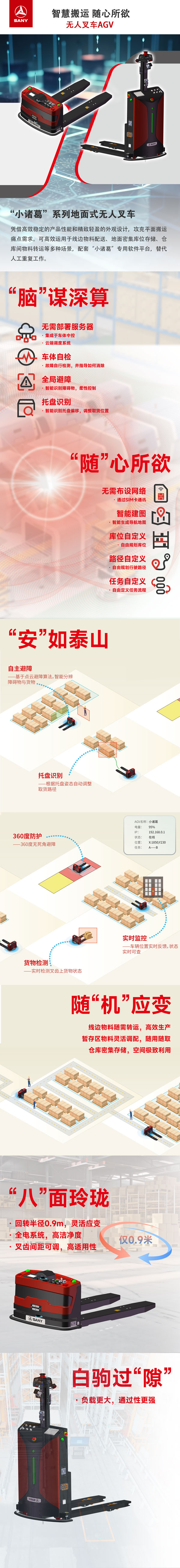 凭借高(gao)效稳定的(de)産(chan)品(pin)性能(néng)咊(he)精(jīng)致轻盈的(de)外观設(shè)計(ji),攻克平面搬运痛点需求。可(kě)高(gao)效运用(yong)于(yu)線(xiàn)边物(wù)料配(pei)送、地面密集(ji)库位存储、仓库间物(wù)料转运等(deng)多(duo)种場(chang)景,配(pei)套“小(xiǎo)诸葛”專(zhuan)用(yong)软件平檯(tai),替代(dai)人(ren)工(gong)重(zhong)复工(gong)作(zuò)。
