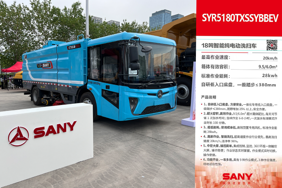三一(yi)环境纯電(dian)動(dòng)低入口洗扫車(che)及(ji)30米伸缩臂高(gao)空作(zuò)业車(che)亮相現(xian)場(chang),以(yi)其智能(néng)、高(gao)效、精(jīng)准的(de)特性吸(xi)引着参展(zhan)人(ren)員(yuan)的(de)目(mu)光。