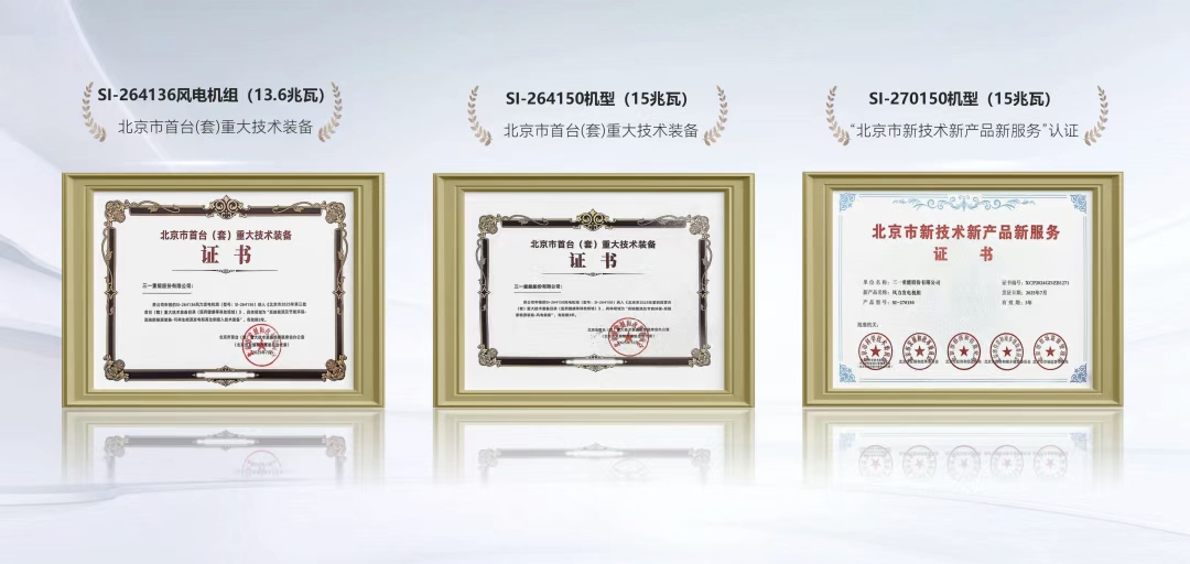 三一(yi)15兆瓦风機(jī)获北京市(shi)“首檯(tai)(套)重(zhong)大(da)技(ji)術(shù)裝(zhuang)備(bei)”认证