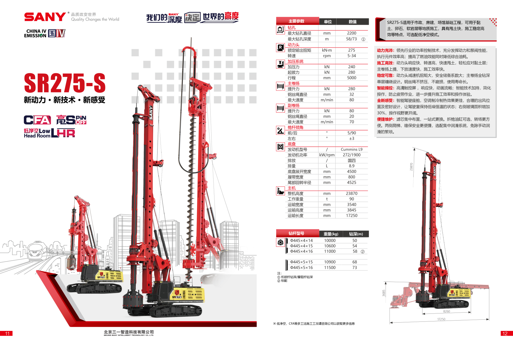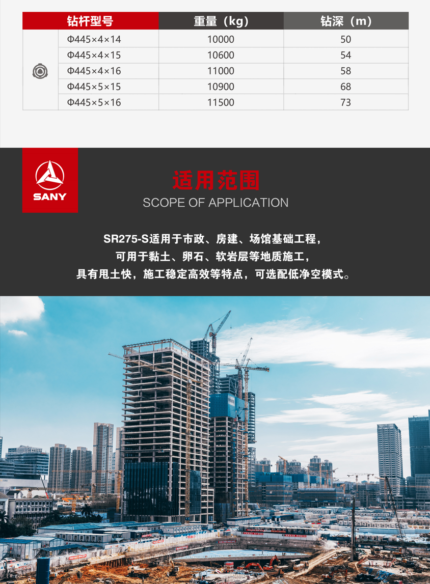 SR275-S适用(yong)于(yu)市(shi)政、房建(jian)、場(chang)馆基础工(gong)程(cheng),可(kě)用(yong)于(yu)黏土、卵石、软岩层等(deng)地質(zhi)施工(gong),具(ju)有(yǒu)甩土快,施工(gong)稳定高(gao)效等(deng)特点,可(kě)选配(pei)低净空模式(shi)。