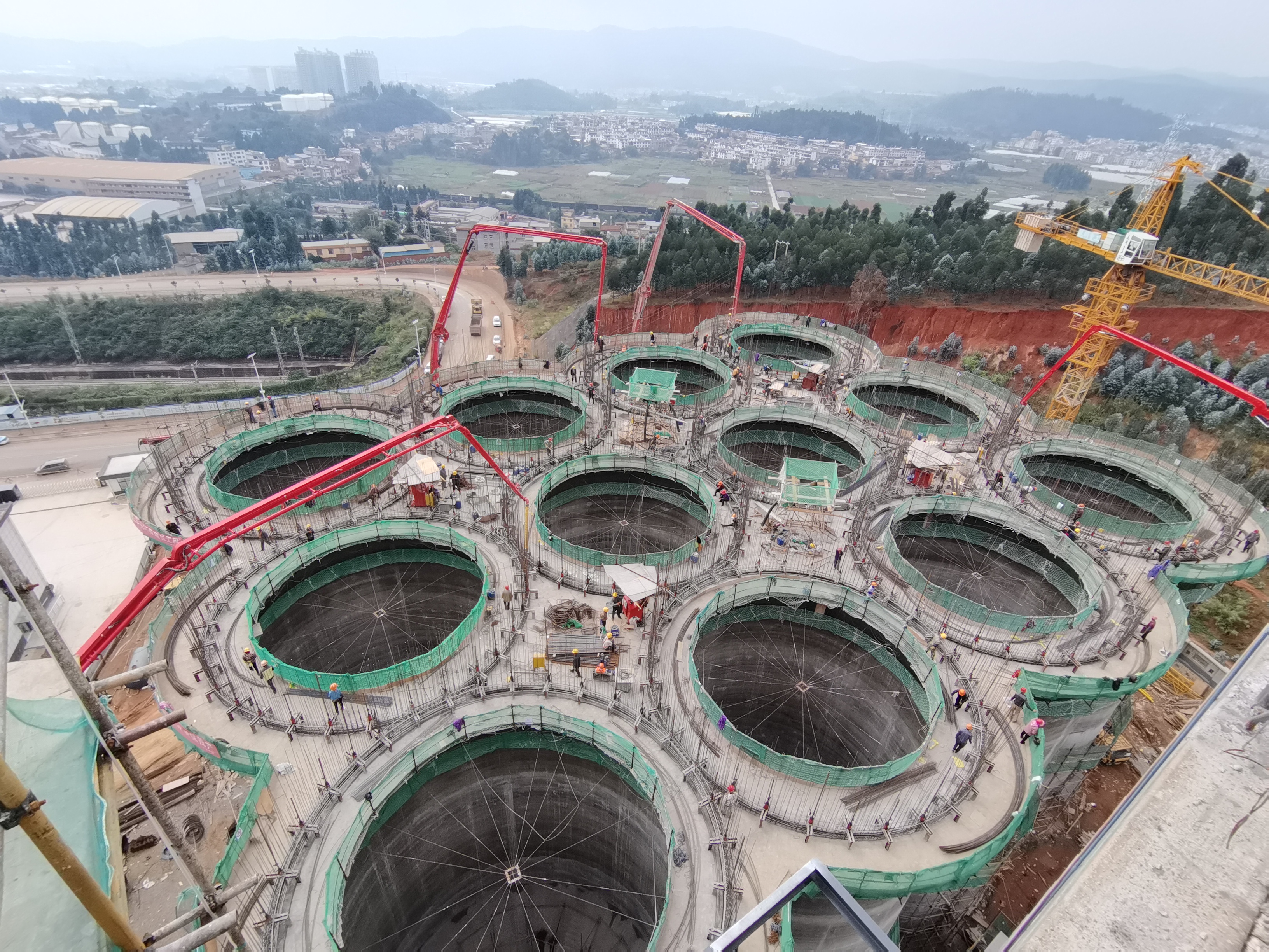 粮仓項(xiang)目(mu)昰(shi)一(yi)圈一(yi)圈地打混凝(ning)土,对泵車(che)臂架的(de)稳定性咊(he)精(jīng)准性要求也(ye)很(hěn)高(gao)。云南(nan)泵送的(de)設(shè)備(bei)租赁主(zhu)任朱林介绍道,“如果抖動(dòng)大(da),浇筑的(de)混凝(ning)土就会洒到(dao)粮仓里面去,粘在(zai)里面,清(qing)理(li)起来非(fei)常难。