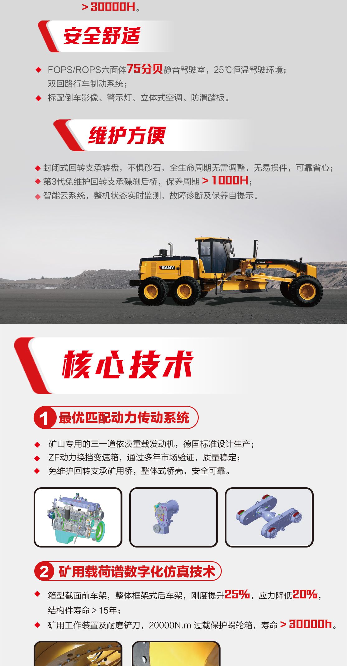 矿用(yong)機(jī)設(shè)計(ji)标准,关重(zhong)件寿命 > 10000 小(xiǎo)时,结构件寿命 >30000 小(xiǎo)时。